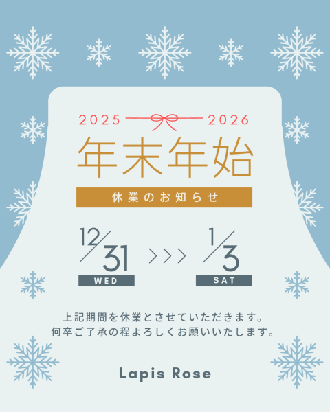 2025年12月31日(水)〜2026年1月3日(土)となっております。1月4日(日)より通常営業となります💆♀️