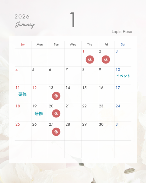 Lapis Roseの1月の定休日は下記の通りとなっております。