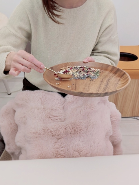 香りの好き嫌いがハッキリしているタイプのようで、今回は6種類のハーブを選んで、40分間よもぎ蒸しを堪能されました🌿